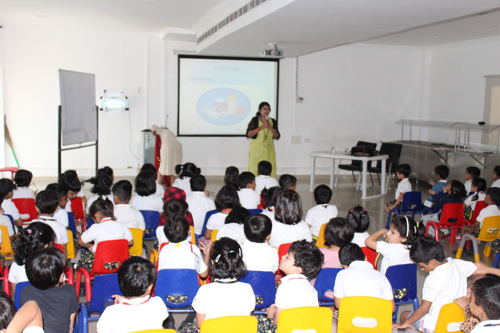 Proper nutrition is one of the essentials for staying healthy. Food has been undergoing many transformations – the raw meat to the most healthy form of it being one of them. Our body requires tremendous energy to carry out the day today activities, and food is one of the primary sources of energy. Ensuring children eating healthy always is a task for all mothers and teachers for children go only by the taste of the food, not its nutritional value. Inculcating the importance of eating healthy in children would help them grow into strong individuals who understand the benefits of eating healthy. To encourage and persuade the geckos to eat healthy, The Gaudium organized a guest talk on nutrition for PP2.